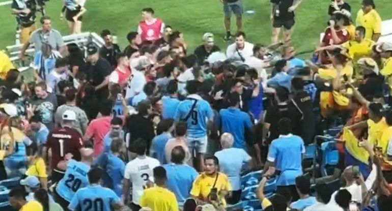 Conmebol publicó las sanciones a los jugadores de Uruguay que se pelearon con hinchas colombianos.