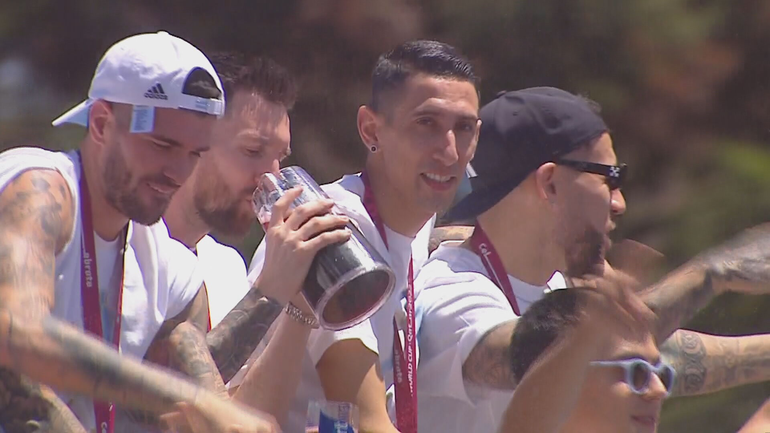 Los jugadores ya están en la autopista directo a la Capital Federal para festejar en una de las mayores movilizaciones de personas de la historia argentina.