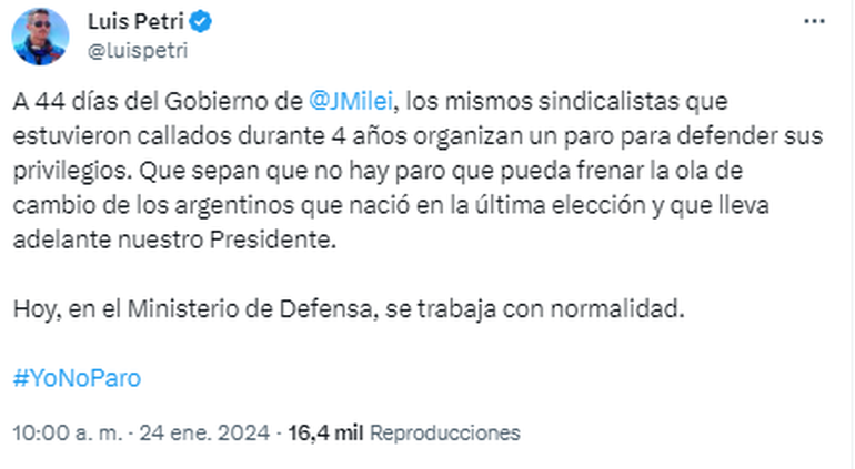 La Confederación General del Trabajo (CGT) desarrolla el primer paro general contra el Decreto de Necesidad y Urgencia (DNU) y la Ley Ómnibus del gobierno de Javier Milei. Hay acusaciones cruzadas entre el oficialismo y los sindicatos.