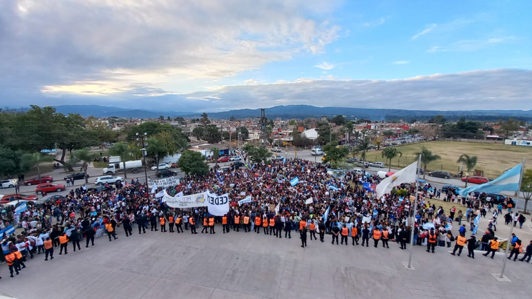 En el tercer día de paro docente por tiempo indefinido en Jujuy, los gremios negocian con el Gobierno en la reunión paritaria que tiene lugar en el Ministerio de Educación. Una columna de personas espera en la puerta.