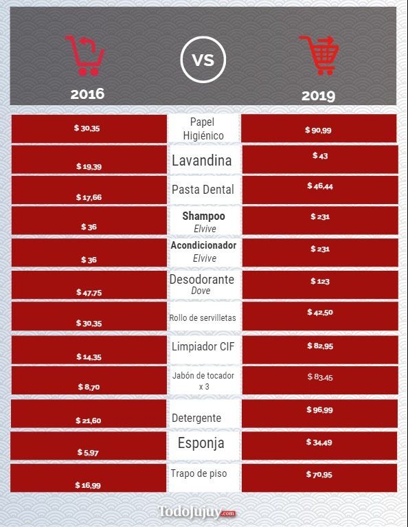 Por una lista básica que incluía mercadería de almacén y limpieza hicimos la cuenta de 500 pesos llevando: Papel Higiénico (Scott), Leche líquida en caja, lavandina en gel, detergente Magistral, Shampoo Elvive, Acondicionador Elvive, pasta dental Kolinos, desodorante aerosol Dove, Limpiador CIF, Rollo de cocina Sussex, jabón de tocador Plusbelle x3, Galleta Opera, Polenta Molinor, Yerba VerdeFlor, Sal fina 2 anclas, Puré de tomate, harina Blancaflor, harina Florencia 000, azúcar Rio Grande, fideos Terrabusi, Caldos Knorr, dulce de leche Ilolay, yogurt firme Yougurisimo, tapa de empanadas San Javier, Mayonesa Fiesta, picadillo La Blanca.