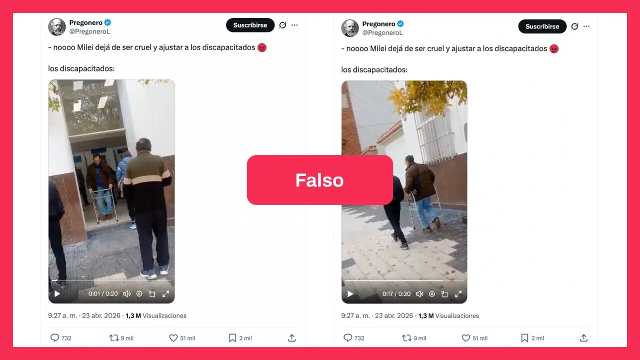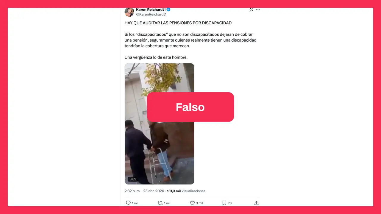 El video también fue difundido por la diputada nacional por La Libertad Avanza, Karen Reichardt, quien escribió en X: “HAY QUE AUDITAR LAS PENSIONES POR DISCAPACIDAD. Si los ‘discapacitados’ que no son discapacitados dejaran de cobrar una pensión, seguramente quienes realmente tienen una discapacidad tendrían la cobertura que merecen. Una vergüenza lo de este hombre”.