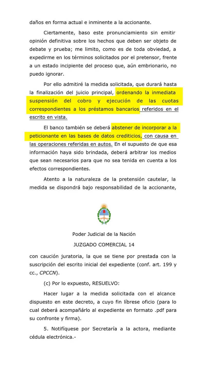 Tras quedar con deudas acumuladas y un historial crediticio deteriorado, el Juzgado Comercial N° 14 emitió el jueves pasado una medida cautelar que detuvo los cobros y evitó que se registrara la calificación negativa de Rosa.
