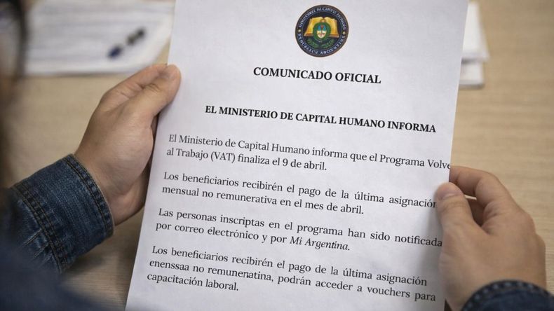 El Gobierno informó que el Programa Volver al Trabajo finalizará en abril.