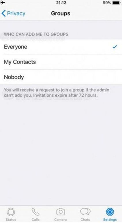 En la nueva actualización de WhatsApp estará disponible en la Configuración de privacidad de servidores ocultos, la función que te permitirá impedir que te agreguen en grupos que no deseas.